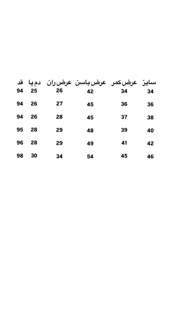 جنس:جین کش در حد یک الی دو سانت قد مدل:170 قد شلوار 97