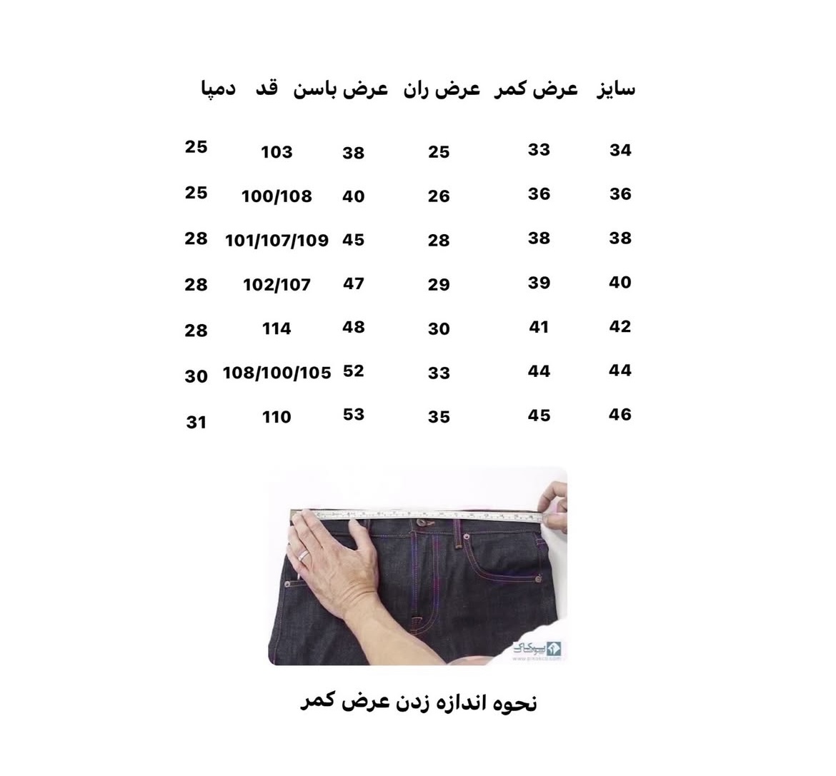 جنس:جین کش در حد یک الی دو سانت قد مدل:170 قد شلوار 97