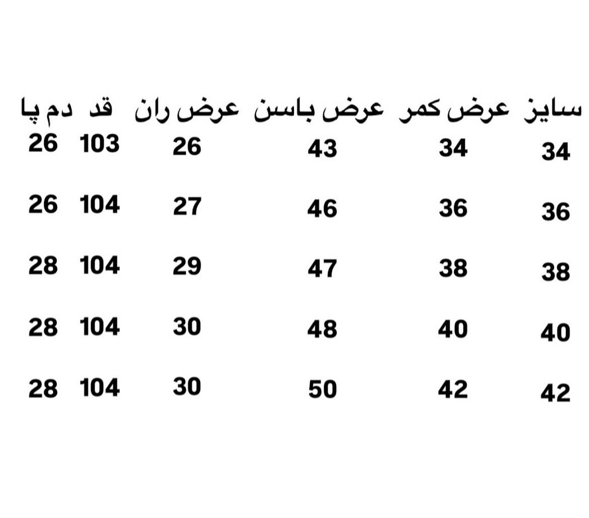 جنس:جین کش در حد یک الی دو سانت قد مدل:170 قد شلوار 97