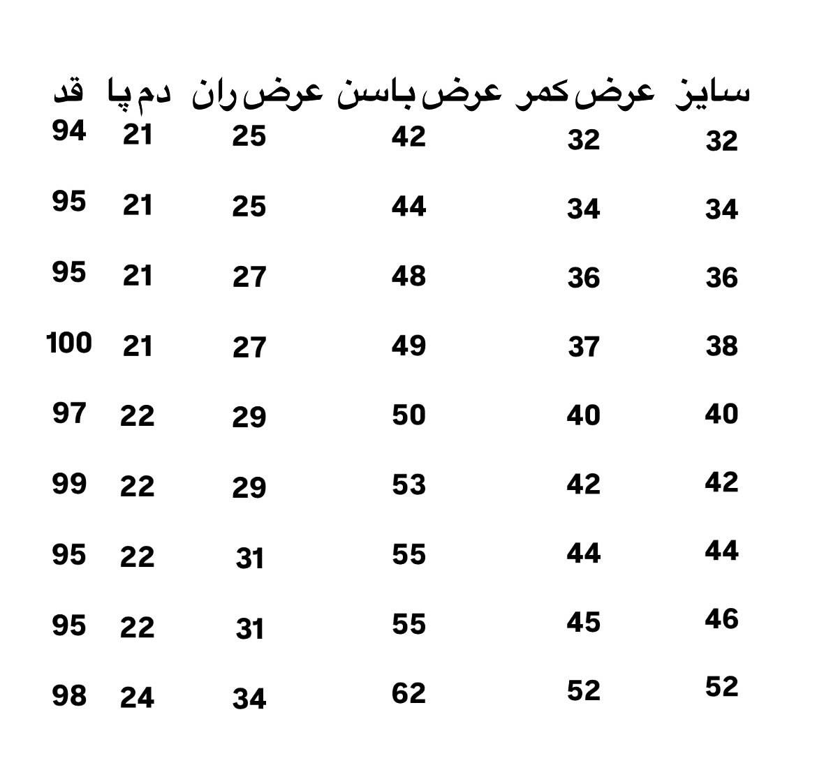 جنس:جین کش در حد یک الی دو سانت قد مدل:170 قد شلوار 97