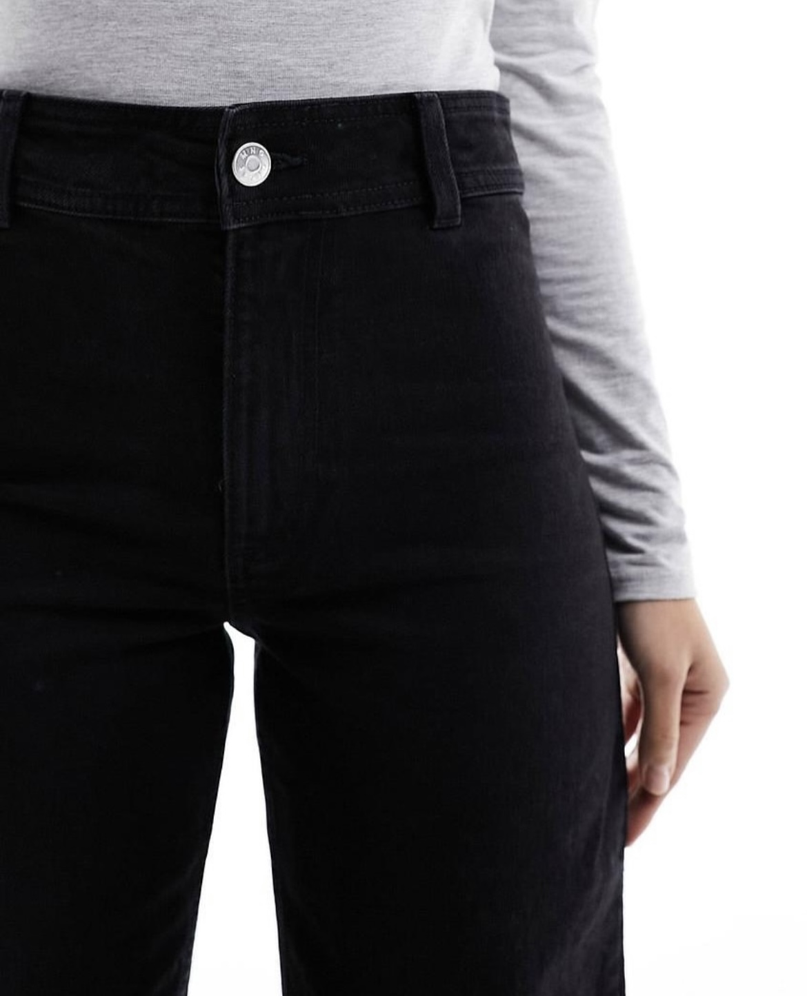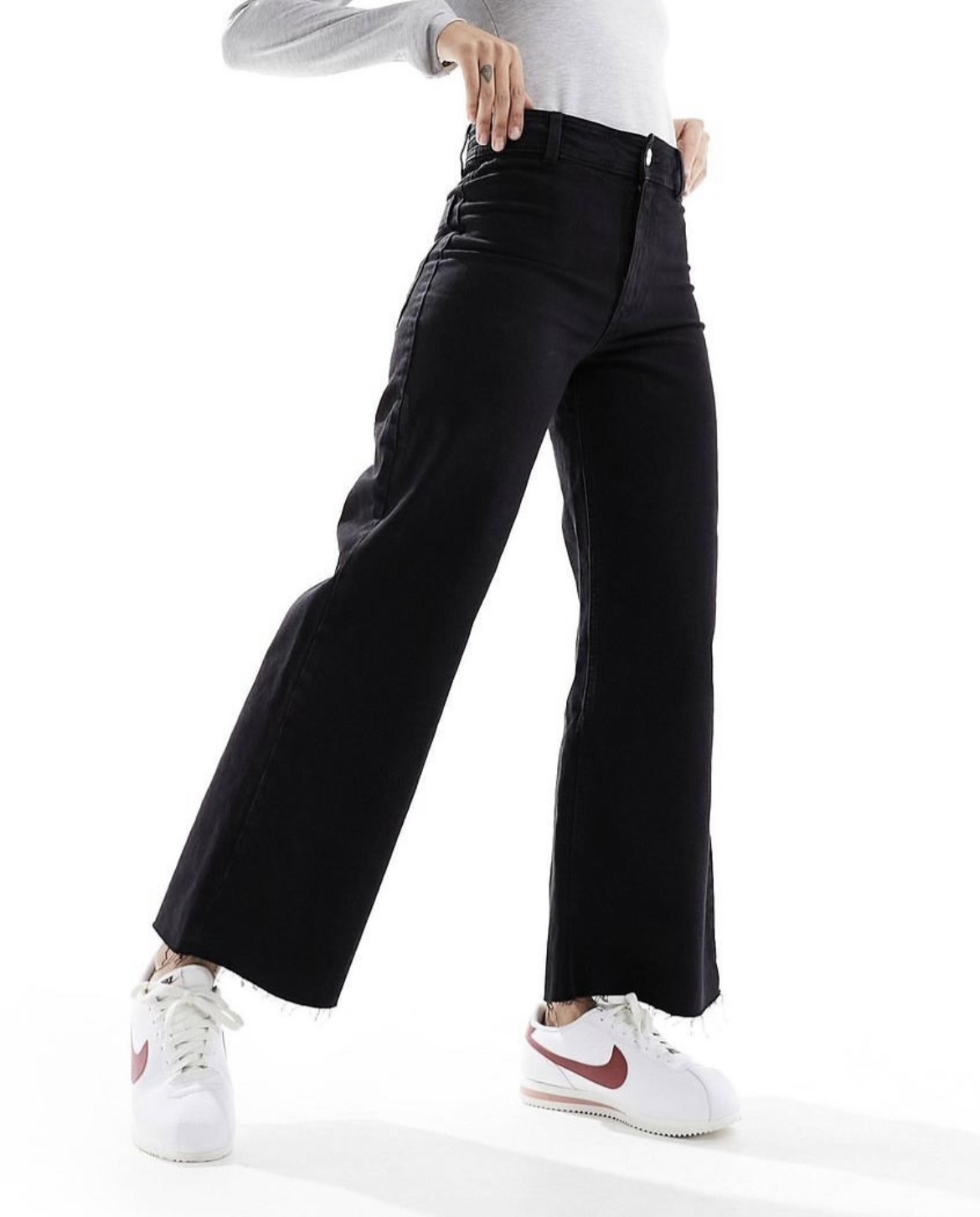 جنس:جین ضخیم اصلا کش ندارد بخاطر جنس ضخیم ایستاییش به صورت افتاده و لخت نیست. کاملا مشکی